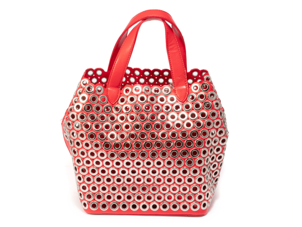 Комплект стильних сумок: сумка з сквозною перфорацією і залізними вставками та міні - сумка яку можна використовувати як окрему сумочку або косметичку. Основні відділення - 1 шт. Міні - сумка: основні відділення - 1 шт (на блискавці), кишеня на блискавці внутрішня - 1 шт. Знімний ремінь для сумки - 1 шт.