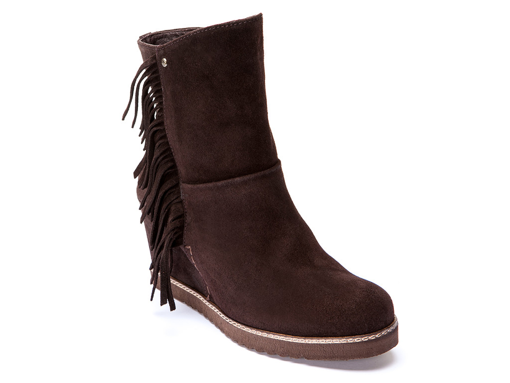 Стильні та практичні демісезонні півчобітки від модного бренду Weekend. Довга красива бахрома в етнічному стилі - тренд цього сезону! Щільна підошва і стійка танкетка зручні при ходьбі. Широкий рант захищає велюровий верх від слякоті. Цю пару можна носити з легінсами, лосинами, сукнею-светром, тунікою, кардиганом, пуховиком до коліна, курткою пілота.