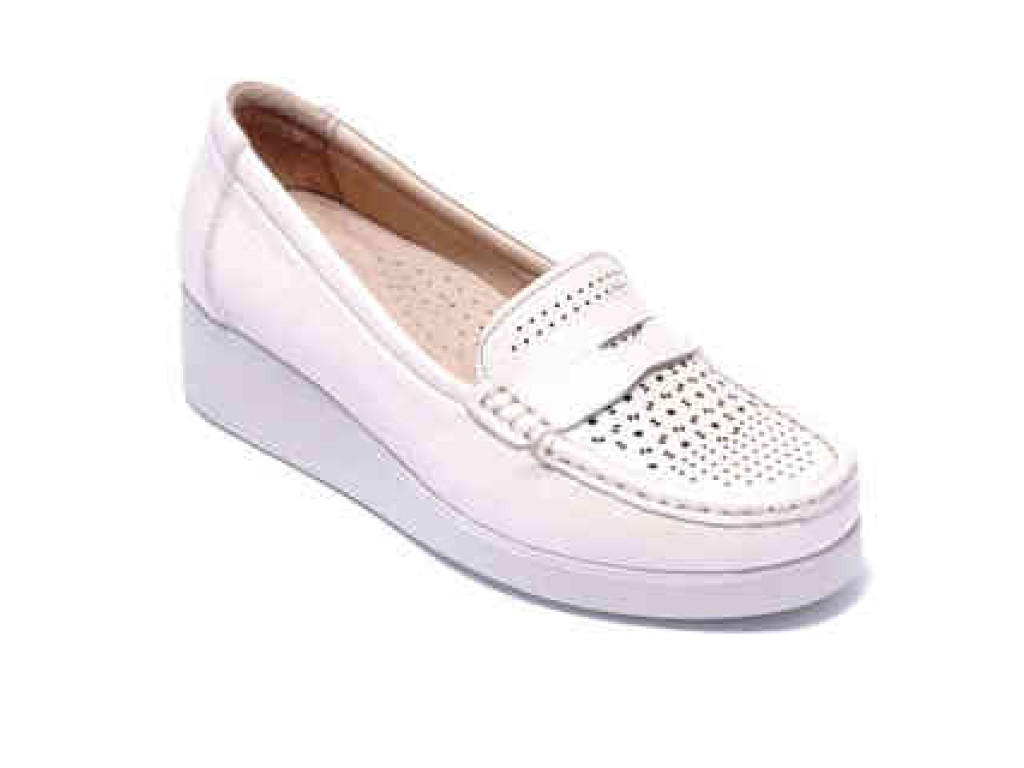 Туфлі з м'якої натуральної шкіри стануть стильним доповненням твого образу. Біла перфорована шкіра гармонійно поєднуватиметься з популярними відтінками цього сезону: класичний синій, блакитний, оранжевий, смарагдовий та бордо.