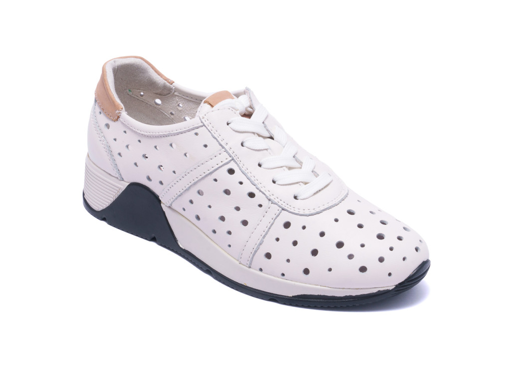 Кросівки на платформі однаково стильно виглядатимуть як у поєднанні з сукнею, так із джинсами. Перфорована натуральна шкіра в комбінації з двокольоровою підошвою та коричневими шкіряними вставками на язичку та п'ятці створюють завершений та яскравий образ, який не залишить власницю без захоплених поглядів.